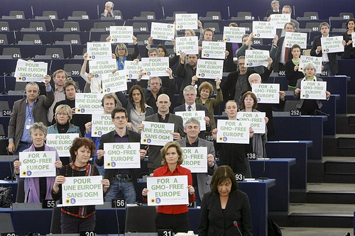 Members of European Parliament in Strasbourg France on March 9, 2010, protesting the European Commission’s stance to re-admit GMOs after ongoing pressure from the U.S. government