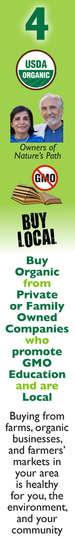 What other step can you do to free yourself of harmful food ingredients while supporting both the organic industry and public awareness about GMOs? Choose organic from companies who are family owned, dedicated to GMO education, and… LOCAL.